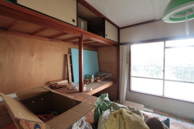 一部屋の押入れだった部分はテレビを置くスペースとしました。幅は1.5mほどありますので、ものにもよりますが