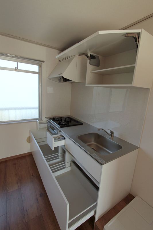 キッチン収納はたっぷり、コンロは3口+魚焼きグリル付です。